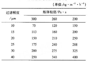 表中聚酯熔體過濾器流量推薦值