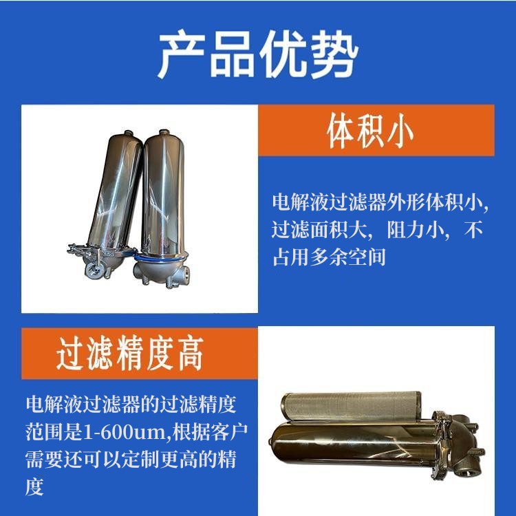 產(chǎn)品描述:不銹鋼濾芯式電解液過(guò)濾器是由304或者316材質(zhì)不銹鋼制成,通常來(lái)說(shuō),為了確保過(guò)濾器運(yùn)行的穩(wěn)定,很多電池企業(yè)、汽車配件企業(yè)都會(huì)選擇316材質(zhì)來(lái)定制過(guò)濾器.....