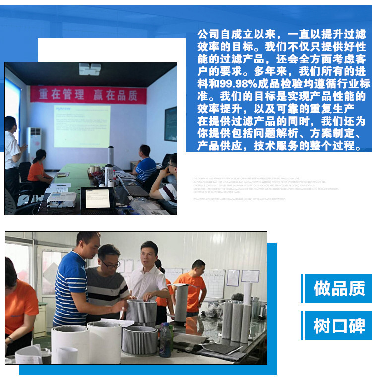 新鄉(xiāng)市卅亞過(guò)濾有限公司自成立以來(lái)、一直從事過(guò)濾產(chǎn)品的研究、設(shè)計(jì)和制造,公司匯集了一大批***技術(shù)人才,***從事過(guò)濾凈化的研究和應(yīng)用,為產(chǎn)品的設(shè)計(jì)制造提供技術(shù)支持。經(jīng)過(guò)多年的發(fā)展,逐步轉(zhuǎn)變?yōu)楣I(yè)過(guò)濾器制造行業(yè)的一個(gè)重要品牌,在國(guó)內(nèi)及國(guó)外擁有者廣闊的市場(chǎng),自成立伊始,卅亞過(guò)濾不斷融合國(guó)內(nèi)外的技術(shù),引進(jìn)***的生產(chǎn)設(shè)備,配套***的質(zhì)檢設(shè)備,傾心為客戶提供技術(shù)服務(wù)、并提供油和空氣的過(guò)濾解決方案。我們提供的不僅僅是過(guò)濾產(chǎn)品,而且包括問(wèn)題解析,方案制定,產(chǎn)品供應(yīng),技術(shù)服務(wù)的整個(gè)過(guò)程。