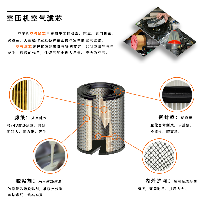 4、結構:空氣濾芯有一頭通或中通的區(qū)分,過濾精度是5-10微米,濾層的摺疊層數不能太稀疏,摺疊層數過少,會影響到過濾精度。